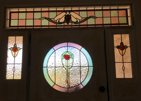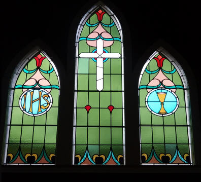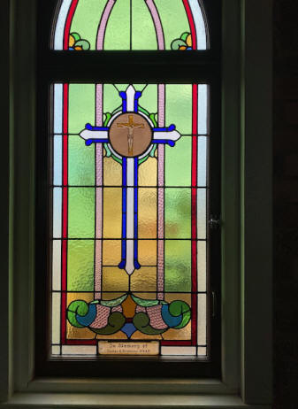 around 1890 and the leadlights were installed around 1923.